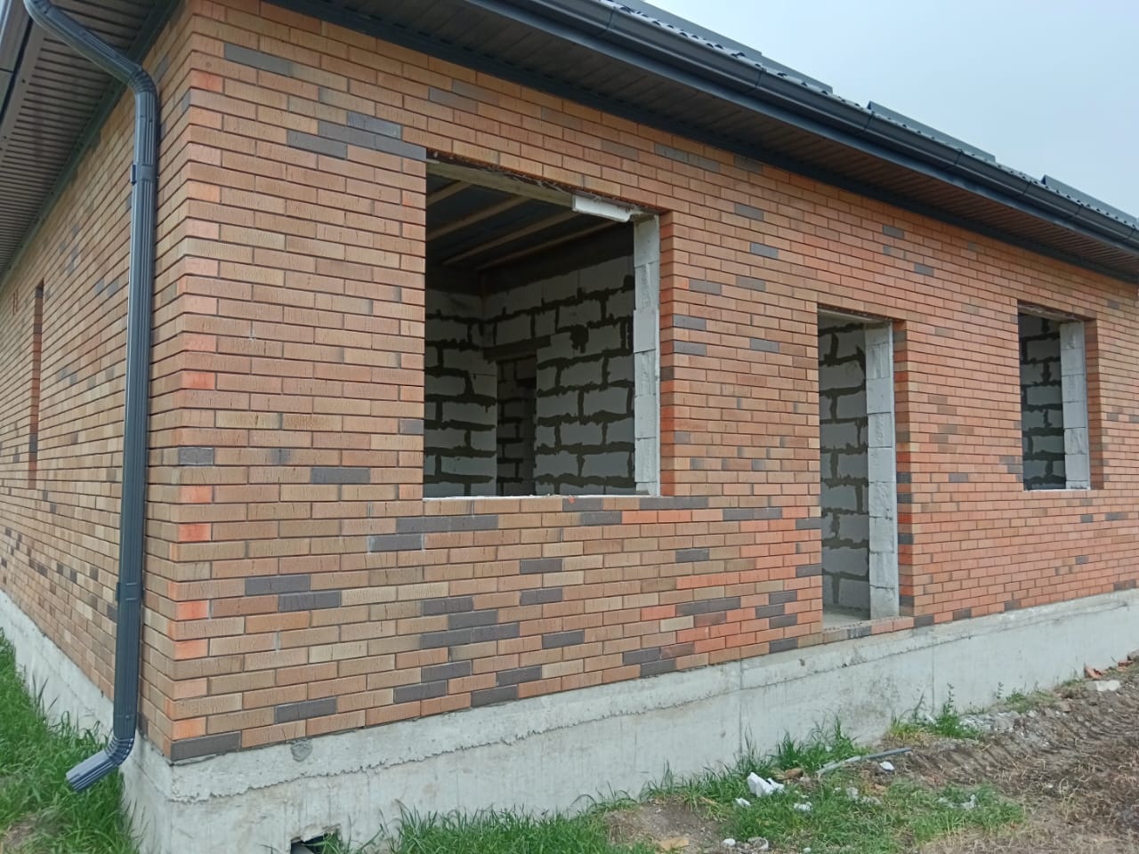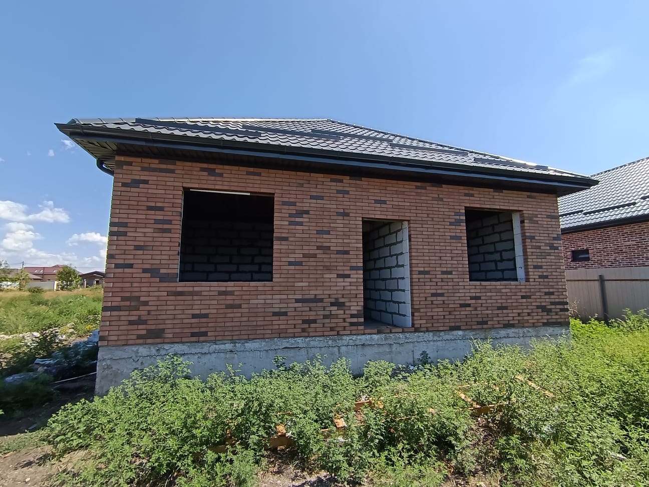 Дом в черновой отделке, фундамент, стены, крыша, окна, двери.