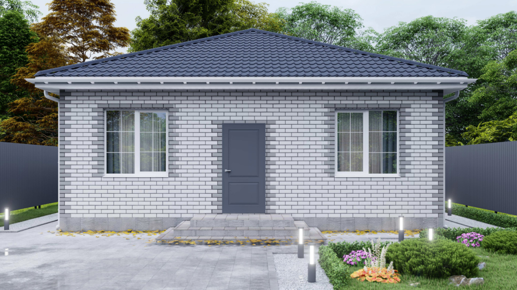Материалы: фундамент — ленточный, стены — кирпич и газоблок, кровля — металлочерепица, окна — пластиковые.