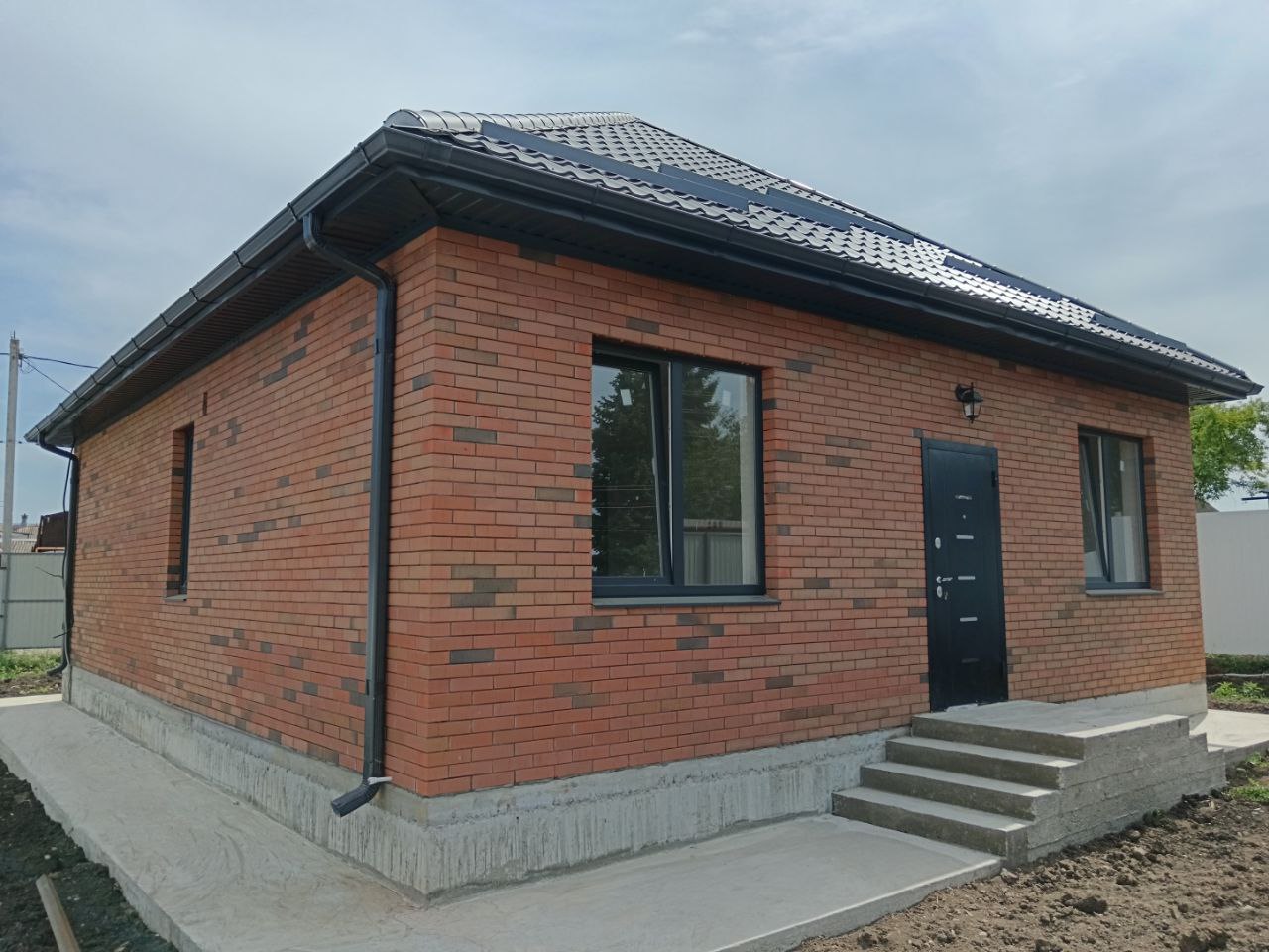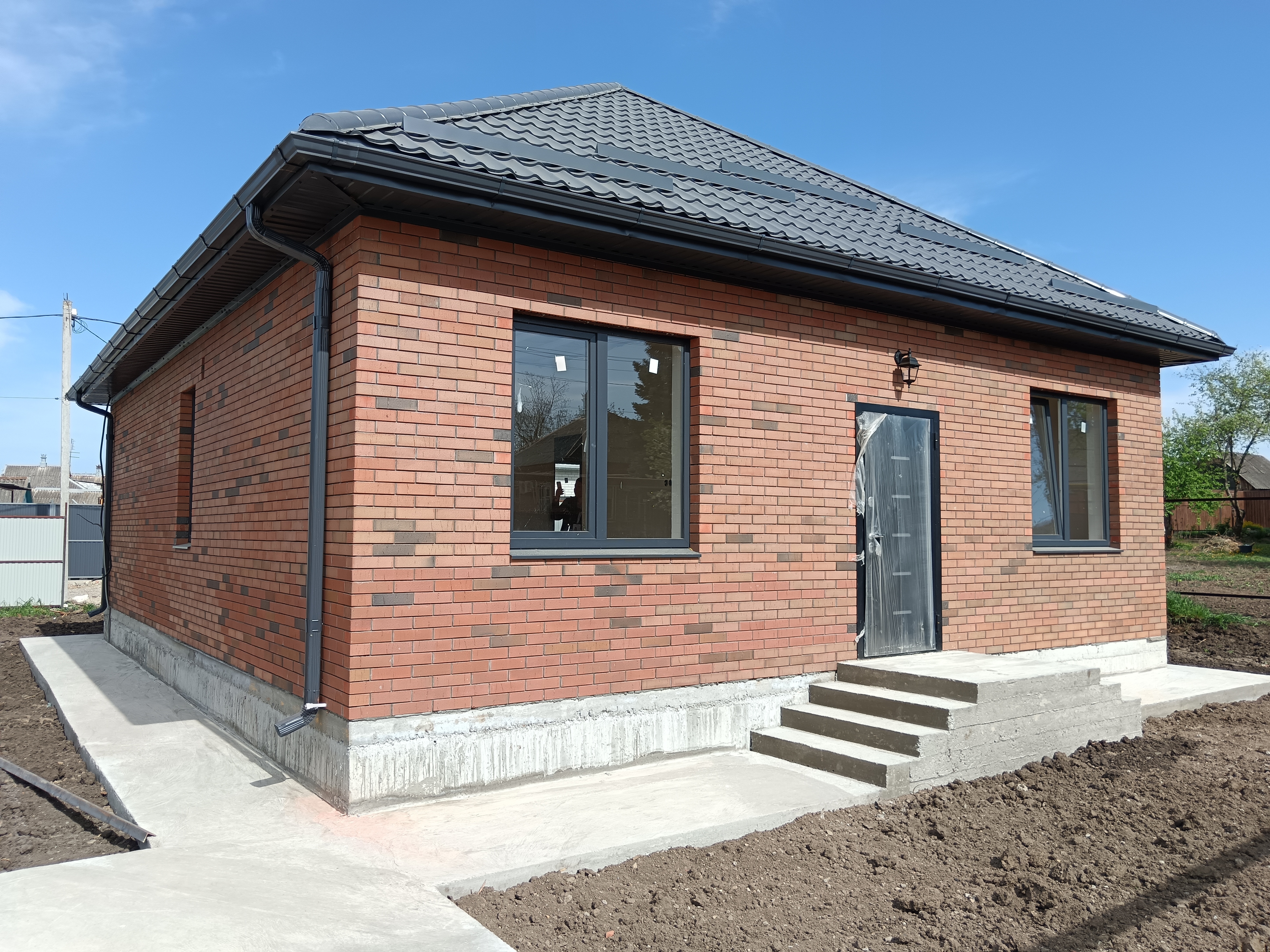 Материалы: фундамент — ленточный, стены — кирпич и газоблок, кровля — металлочерепица, окна — пластиковые.