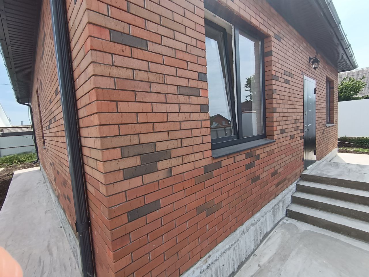 Материалы: фундамент — ленточный, стены — кирпич и газоблоки, крыша — металлочерепица, окна — пластиковые.